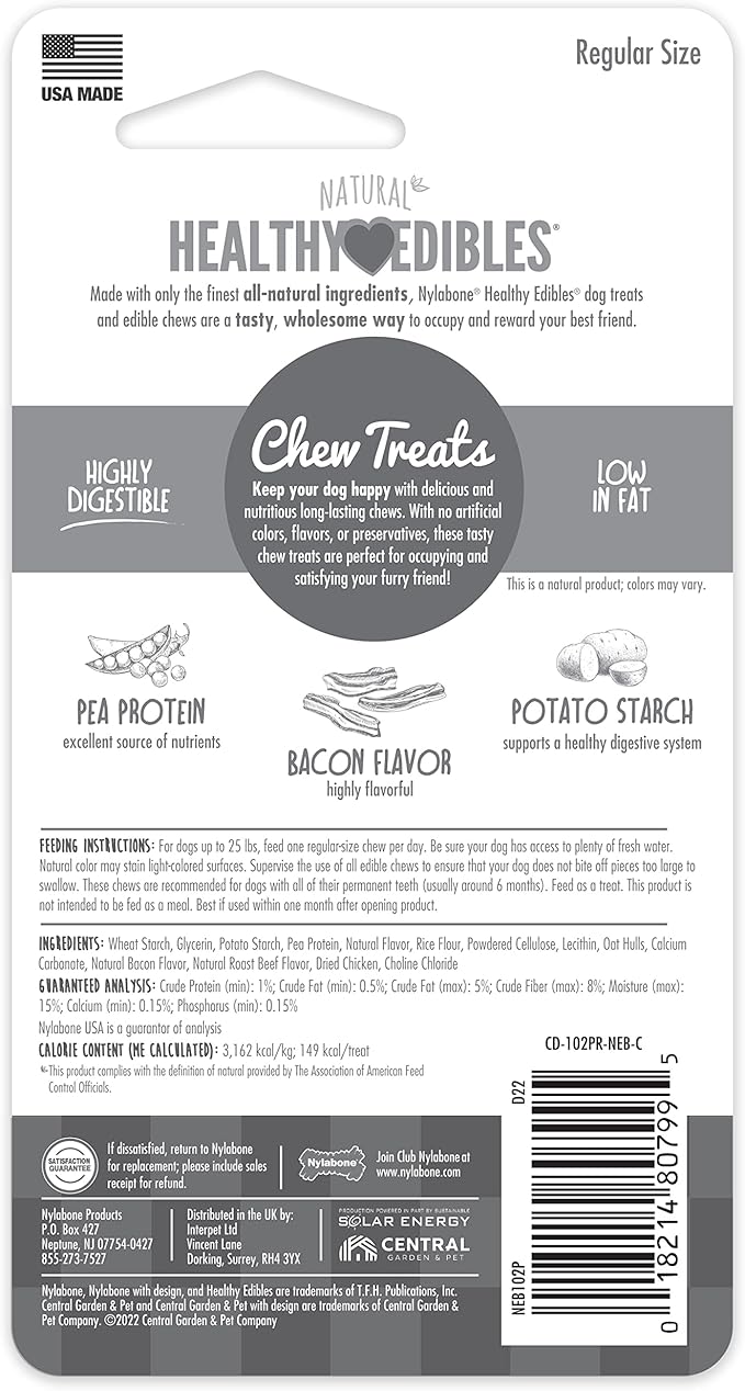 Nylabone Healthy Edibles Natural Dog Chews Long Lasting Bacon Flavor Treats for Dogs, Small/Regular (1 Count)