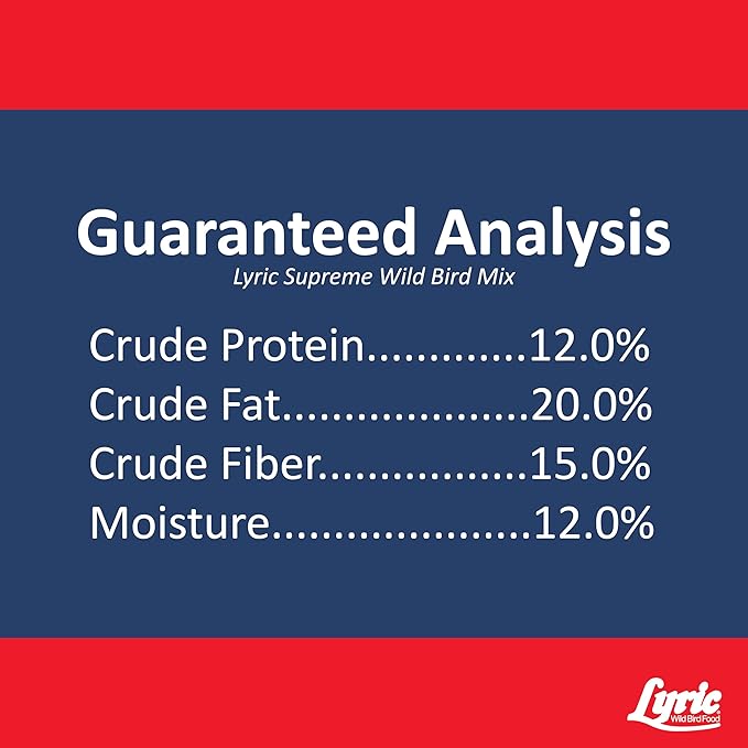 Lyric Supreme Wild Bird Seed, Wild Bird Food Mix with Nuts and Sunflower Seeds, 20 lb. Bag