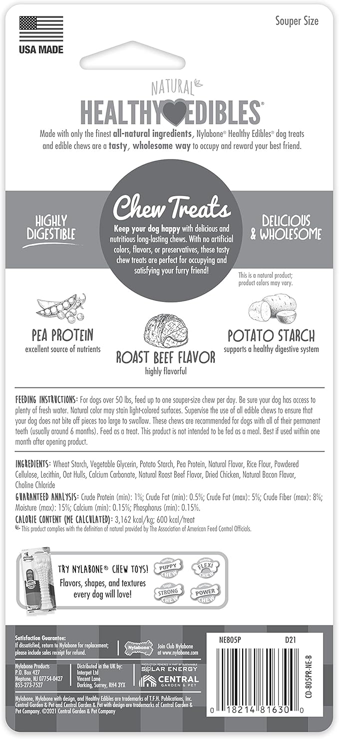 Nylabone Healthy Edibles Natural Dog Chews Long Lasting Roast Beef Flavor Treats for Dogs, X-Large/Souper (1 Count)