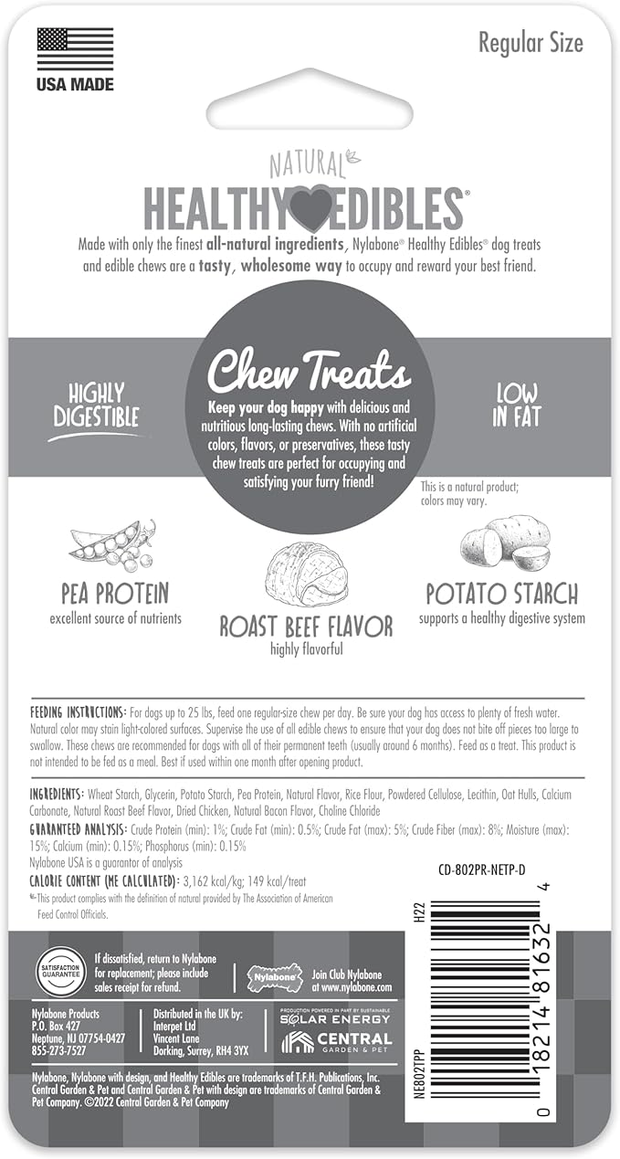 Nylabone Healthy Edibles Natural Dog Chews Long Lasting Roast Beef Flavor Treats for Dogs, Small/Regular (2 Count)