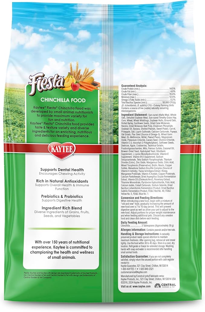 Kaytee Fiesta Chinchilla Food, Nutritious and Fun Blend, Supports Dental Health and Digestion, 2.5 pounds