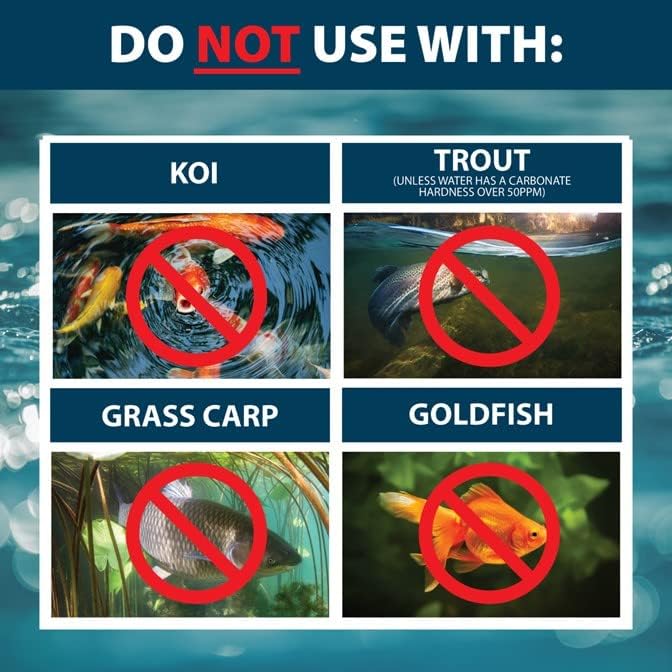 - Environmental Protection Agency Registered for Aquatic Use -- When used as directed, treatment will not harm plants, fish, or pond wildlife. Do NOT use with koi, carp or goldfish. Caution with trout.