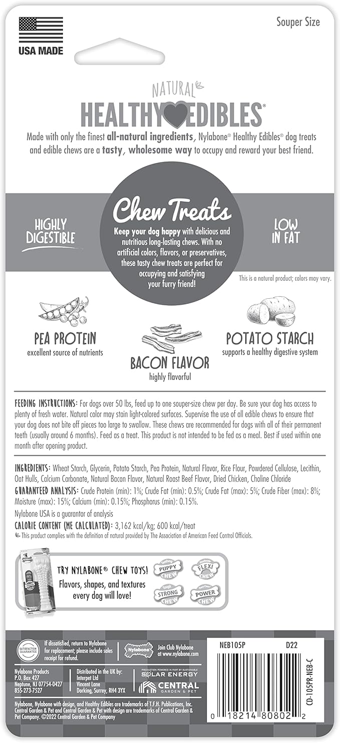 Nylabone Healthy Edibles Natural Dog Chews Long Lasting Bacon Flavor Treats for Dogs, X-Large/Souper (1 Count)