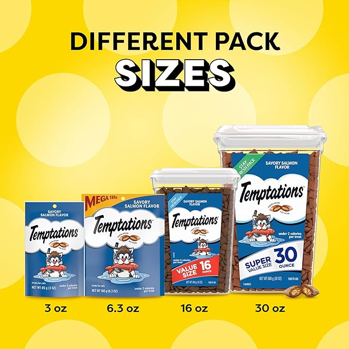Temptations Classic Crunchy and Soft Cat Treats, Savory Salmon Flavor, 6.3 oz. Pouch (Pack of 10)