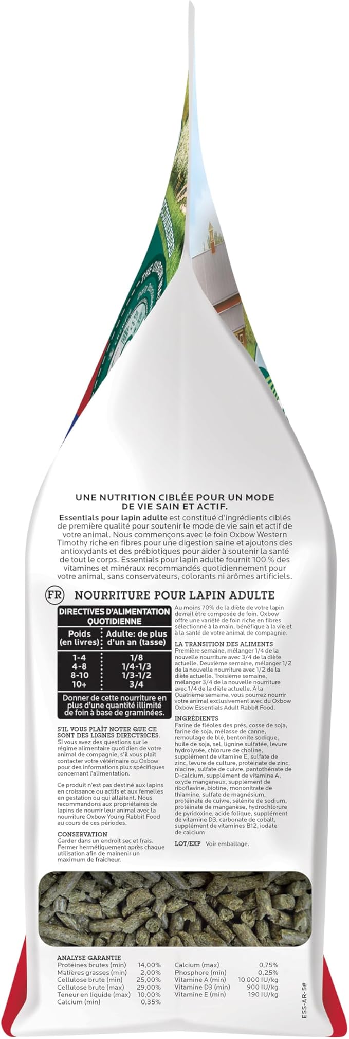 Oxbow Essentials Rabbit Food, Adult Rabbit, Made with Oxbow Timothy Hay, Pet Pellets with Vitamins & Minerals, Small Animal Pet Products, Bunny Supplies, Made in USA, Bunny Food, 5 lb