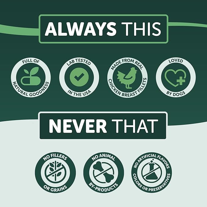 - NUTRITIOUS - Made with premium chicken breast which is high in protein and low in fat, and amino acids to help build and maintain muscle tone, these treats are packed with the nutrition your pup needs and the natural flavor they love.