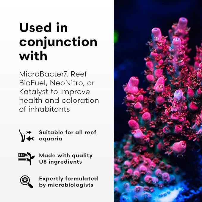 - BALANCES NITROGEN – It's designed to work alongside other products like Microbacter7, Reef Biofuel, and Katalyst in reef aquaria systems. This nitrate regulator for fish tanks specifically caters to advanced reef aquarists maintaining ultra-low nutrient content systems (ULNS)