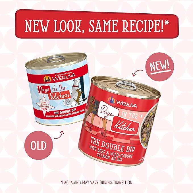 Weruva Dogs in The Kitchen, The Double Dip with Beef & Wild-Caught Salmon Au Jus Dog Food, 10oz Can (Pack of 12)