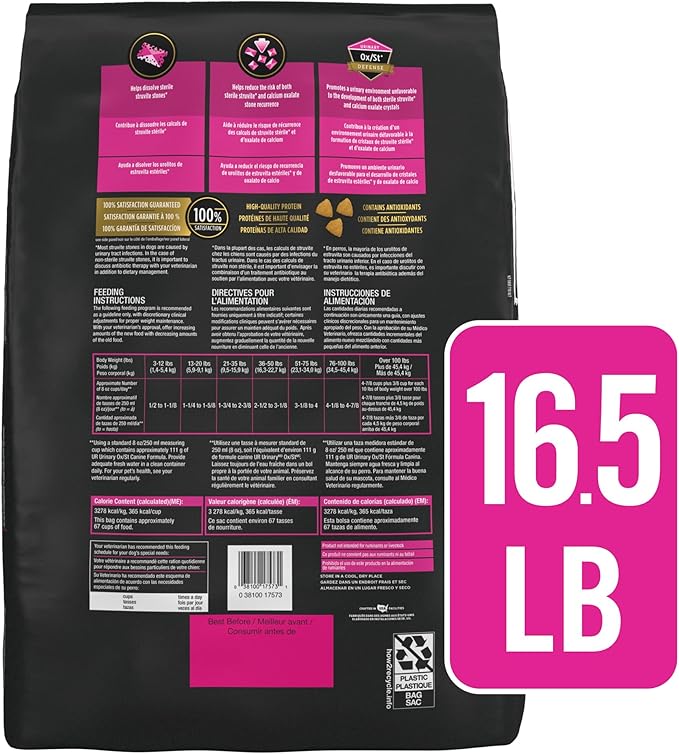 Pro Plan Veterinary Diets Purina UR Urinary Ox/St Canine Formula Dog Food Dry Kibble - 16.5 lb. Bag