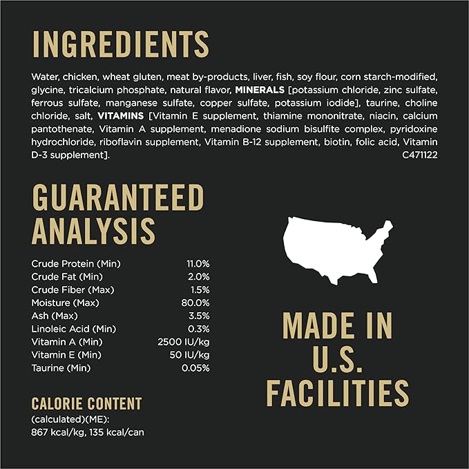 - Premium cat food in gravy provides 100 percent complete and balanced nutrition for adult cats and a high protein level to maintain lean muscle