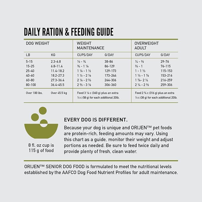- One (1) 23.5 lb bag of ORIJEN Senior Original Dry Dog Food