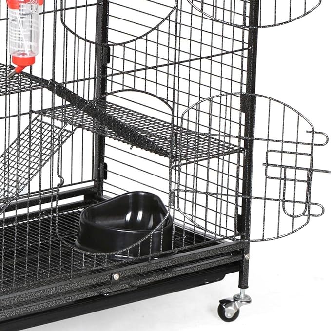 - Extra large exercise space: This pet ferret cage allows several small animals to have fun at the same time; four tiers are connected with ramps, which expand the usable area for pets to climb and rest; perfect for small pets like guinea pigs, squirrels, chinchillas, ferrets, rabbits, hedgehogs, etc