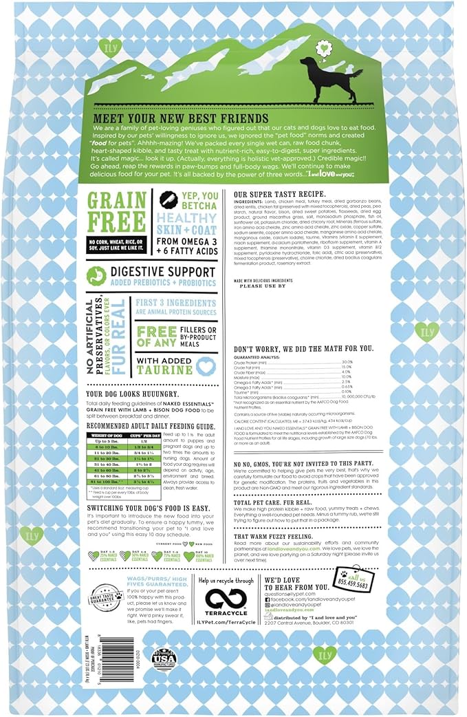 I and love and you Naked Essentials Dry Dog Food - Lamb + Bison - High Protein, Real Meat, No Fillers, Prebiotics + Probiotics, 23lb Bag