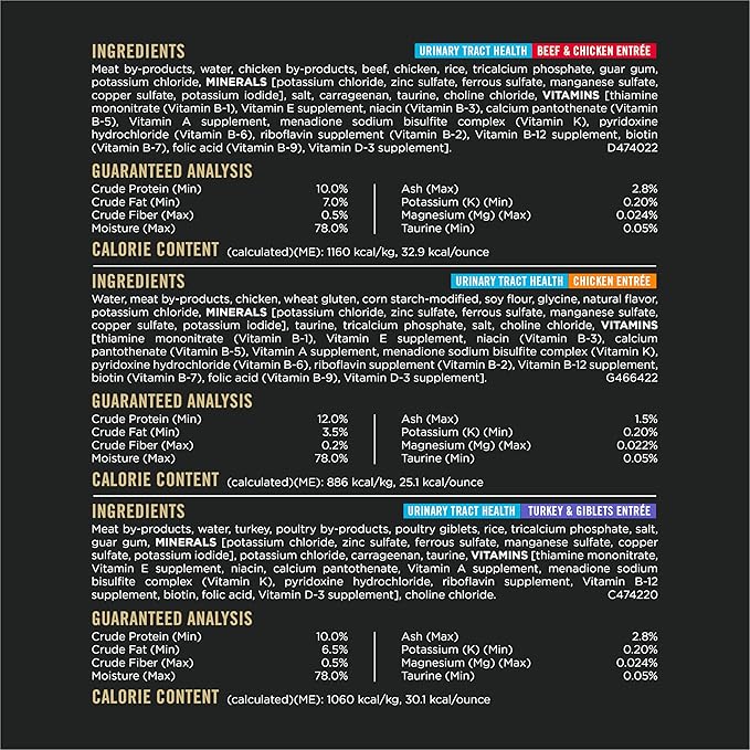 Purina Pro Plan Urinary Cat Food Wet Variety Pack Urinary Tract Health Chicken, Beef and Chicken, and Turkey and Giblets - (2 Packs of 12) 3 oz. Cans