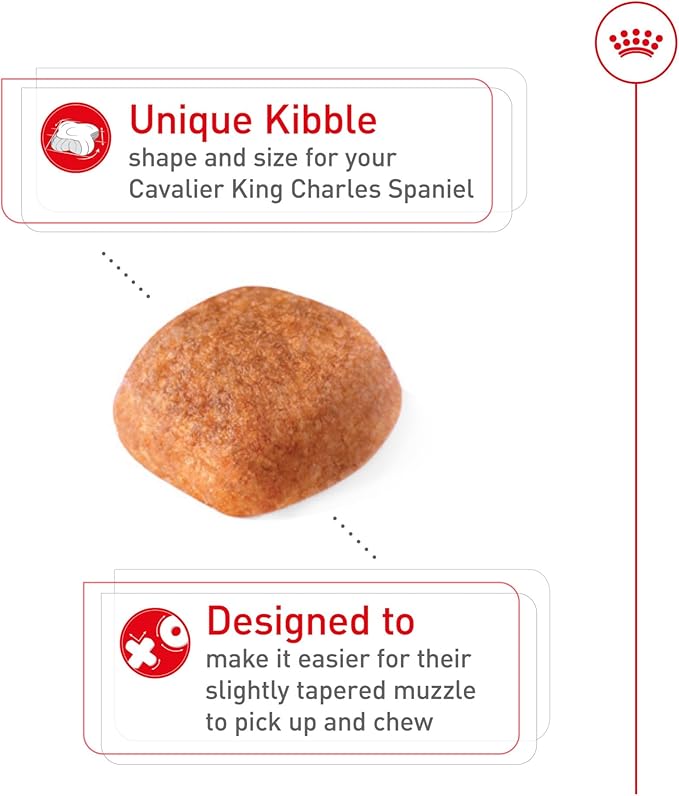 - SPECIALIZED KIBBLE: Unique kibble shape helps Cavalier King Charles Spaniels easily pick up and chew their food