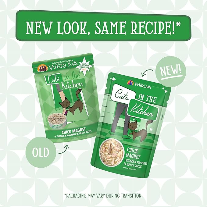 Weruva Cats in The Kitchen, Chick Magnet with Chicken & Mackerel in Gravy Cat Food, 3oz Pouch (Pack of 12)