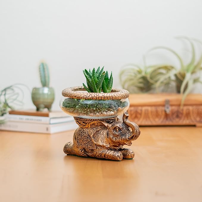 - Complete Gift Set – Includes elephant figurine, removable glass bowl, decorative accent ring, and color gift box. Ready to give as a thoughtful gift for elephant lovers, gardeners, or spiritual décor enthusiasts.