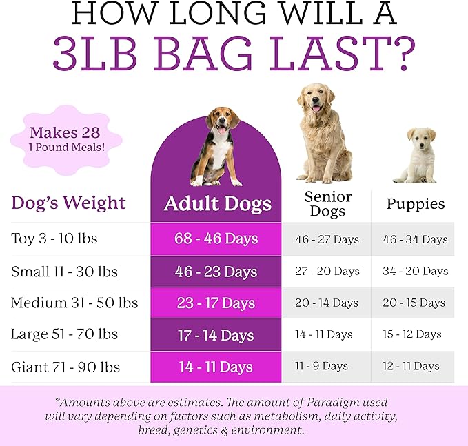 - Nutrition You Can See and Smell! Paradigm is a supergreens base mix used to effortlessly create balanced, homemade meals for your dog as a whole food, ketogenic, low carb alternative to kibble. Feeding your dog a whole food, nutrient dense diet has been shown to improve digestion, increase energy, help improve itchy skin, and produce firmer, less smelly stools. (You'll thank us later!)