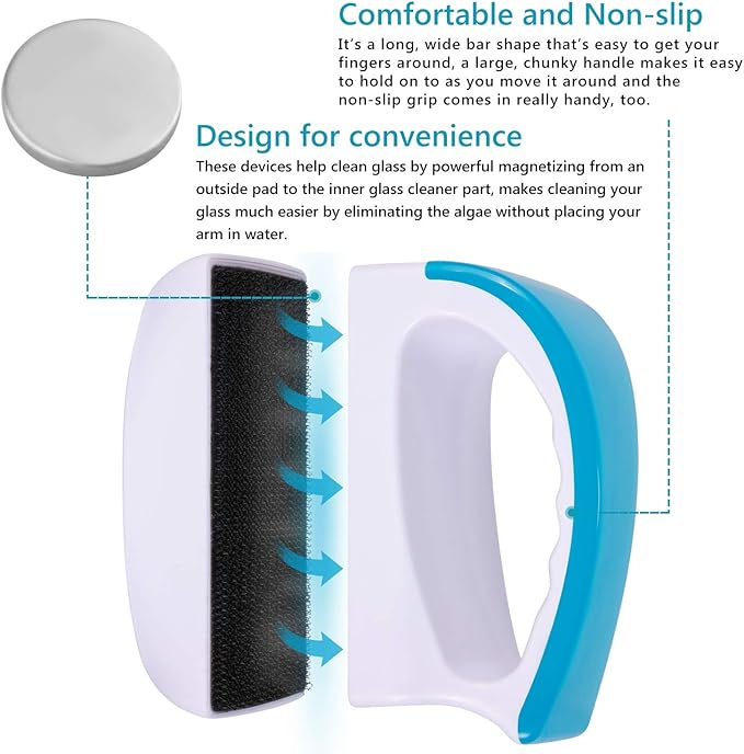- -Simple and Durable : it’s made of waterproof plastic that protects the magnets from rusting. Because of how the fabric is attached, you don’t have to worry about it getting sand or substrate stuck in the fibers and scratching the glass while you clean. It’s also extremely durable, so it will last a long time.