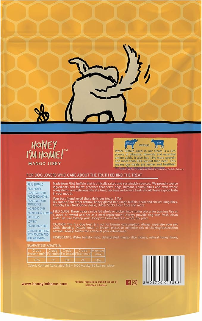 Honey I'm Home, Buffalo Wrapped Mango Jerky Dog Treats, 5.29 Ounces - All Natural, Free Range, Healthy, Grain Free, Honey Coated & Chewy