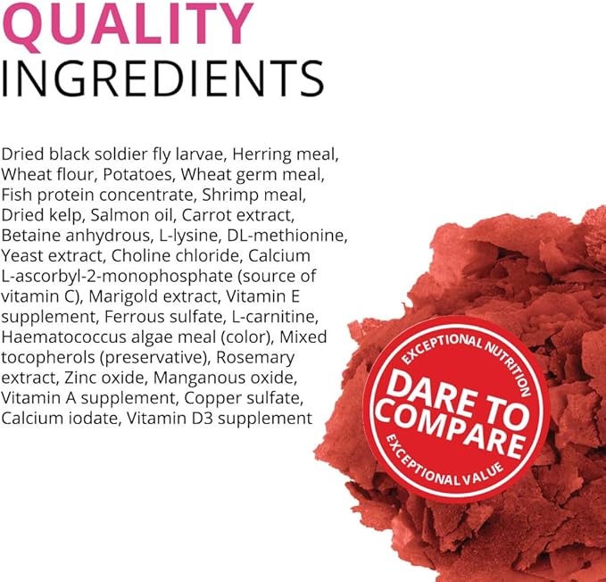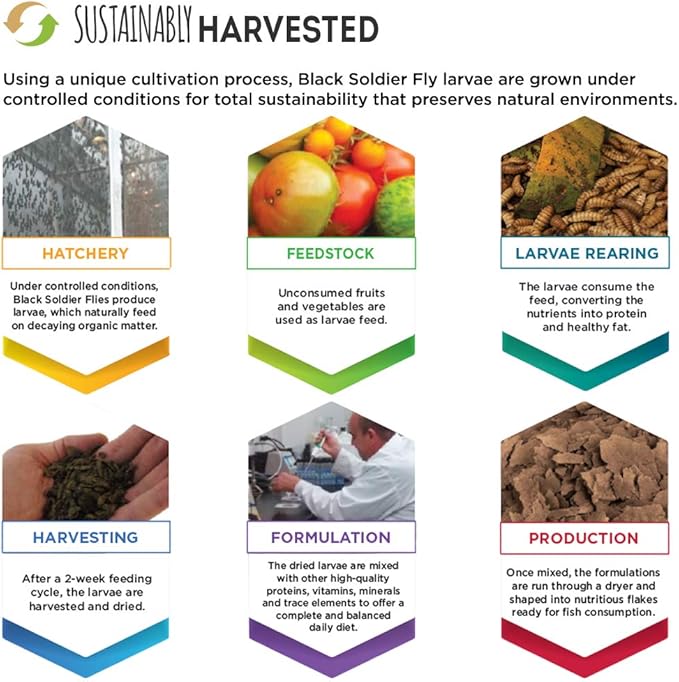 - Tropical fish food that contains up to 40%, nutrient-rich Black Soldier Fly Larvae, the first ingredient