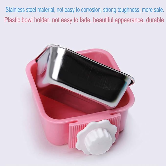 - 【EASY TO CLAN】Removable hanging stainless steel dog bowl are easy to clean,.Just take out of the stainless steel bowl, and clean it by running water, then put the cleaned dog bowl back to cage.