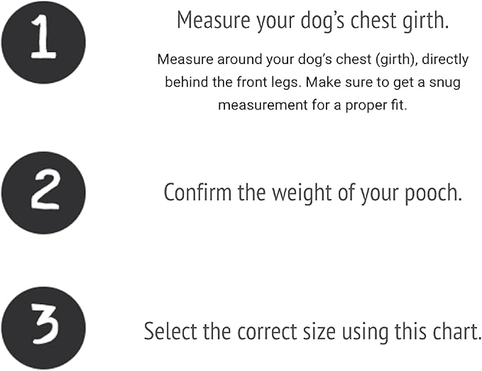 - Please also refer to Sizing & Fitting Steps Images. Size 1: Chest Girth: IN 8-10 or CM 20-25 and Weight up to 2 LBS Size 2: Chest Girth: IN 10-12 or CM 25-30 and Weight 2-4 LBS; Size 2.5 Girth: IN 11-13 or CM 27-32 and Weight 3-5 LBS