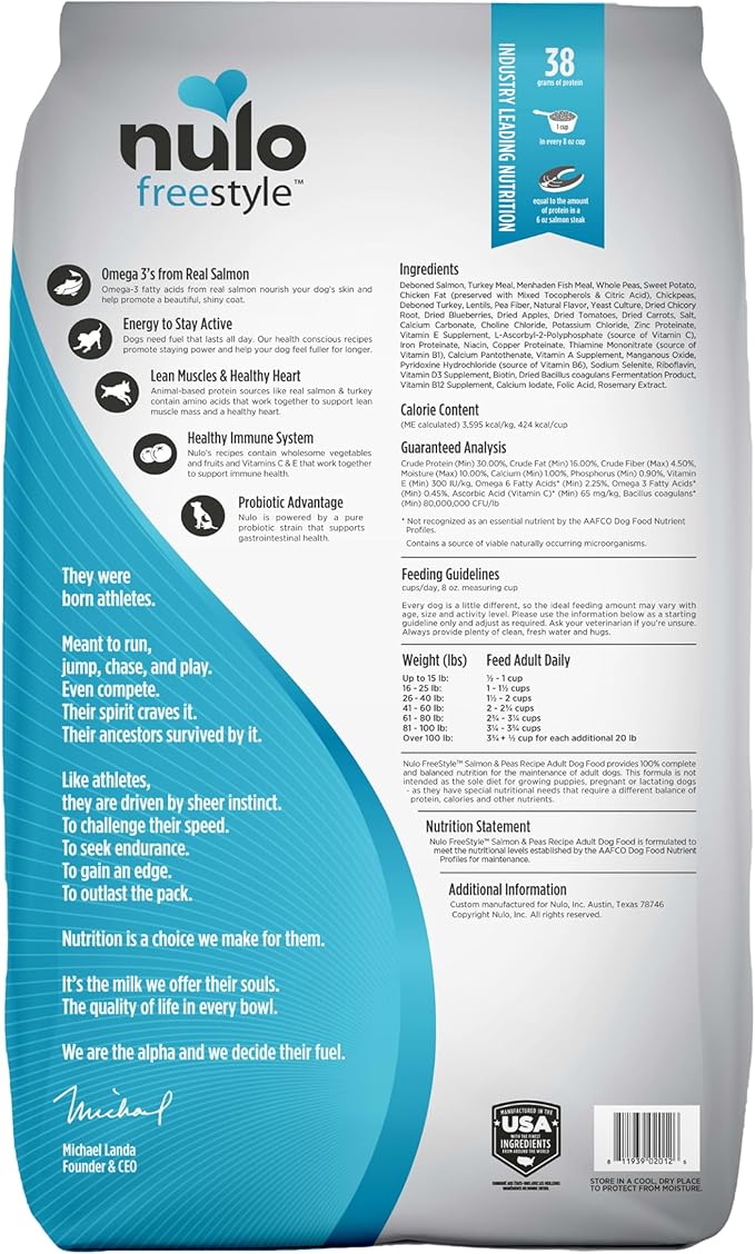 - Supports Skin and Coat – Promote a shiny, healthy coat with Nulo premium dog food, packed with omega-3 and omega-6 fatty acids. These essential nutrients nourish skin and support coat health, helping your dog look and feel their best.