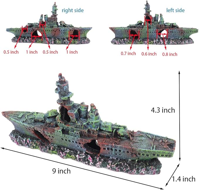 - 【SIZE】This sunken ship is the perfect size for a 1-10 gallon aquarium tank, and doesn't take up a lot of room for your fish’s growth.