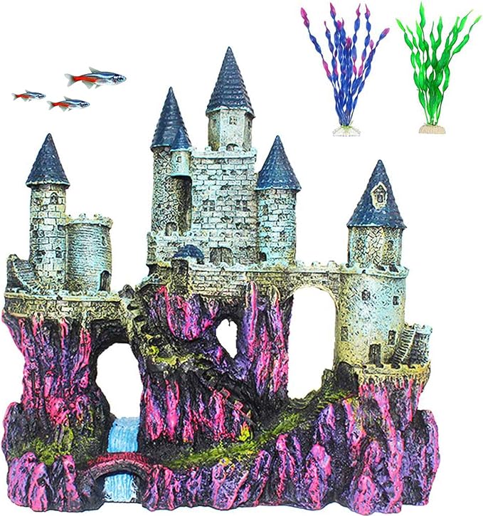 - Product Features:The resin castle fish tank unique structure design,Vivid colors description and realistic image make decorations look beautiful and elegant.Also it looks more brighter and colorful underwater.Fish can in the castle clearance swim shuttle back and forth provides shelter,hiding spots,entertainment venues for the fish,which will become the unique scenery of home
