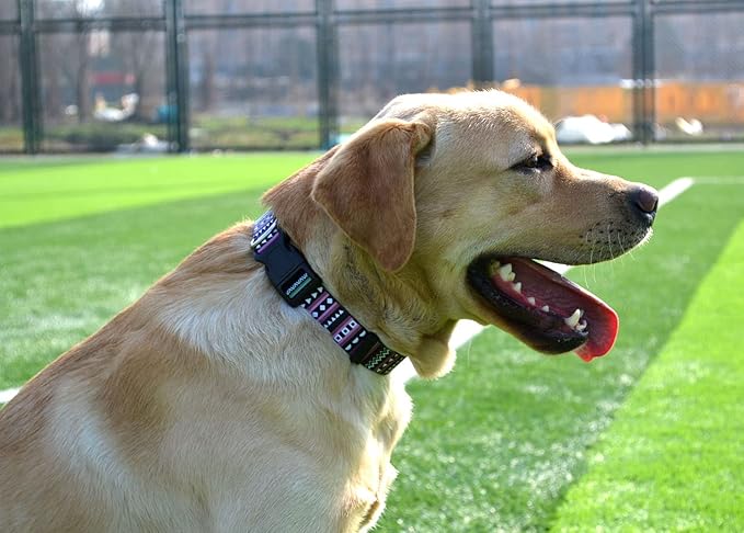 Dog Collar with Bohemia Floral Tribal Geometric Patterns - Soft Ethnic Style Collar Adjustable for Small Medium Large Dogs(Bohemian Purple,L)