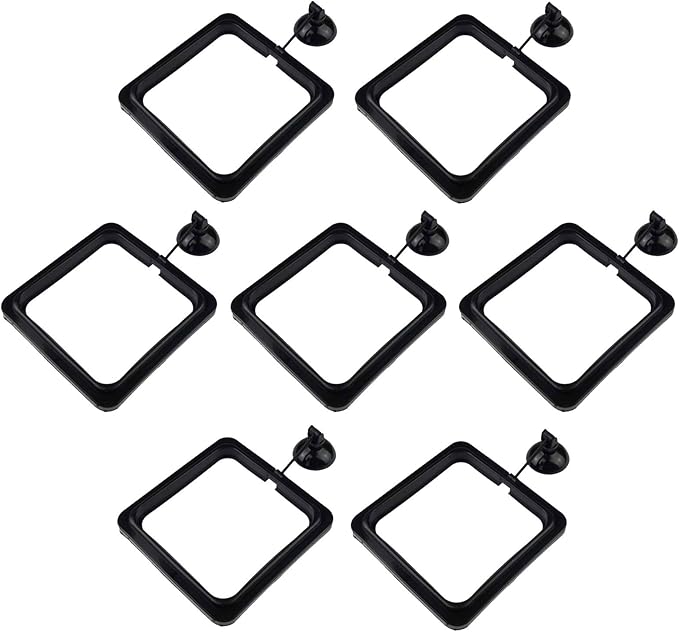 7 Pack Aquarium Fish Feeding Ring Floating Food Feeder, Square Shape with Suction Cup, Black