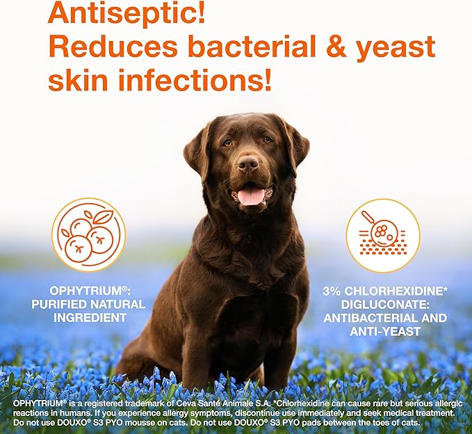 Douxo S3 Pyo Shampoo, Contains 3% Chlorhexidine & 0.5% Ophytrium, Antiseptic & Hydrating, For Bacterial or Yeast Skin Infections, For Dogs and Cats, 16.9 fl. oz. (500mL)