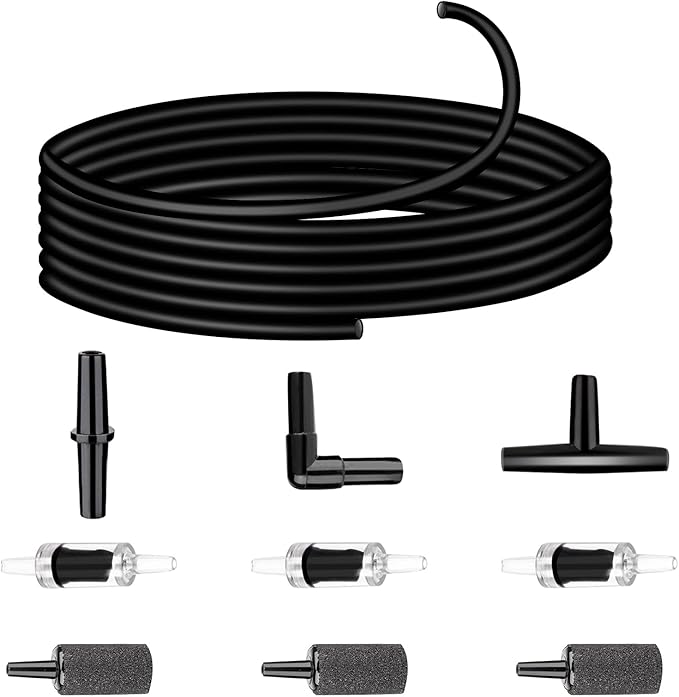 - 1.Full package:The air pump accessories set for aquarium includes a 9.84-feet flexible aquarium air tubing hose,3 aquarium tubing connectors of three different shapes(ILT-shape),3 aquarium hose check valves, and 3 air stones for aquariums, which can be freely matched and combined according to your needs