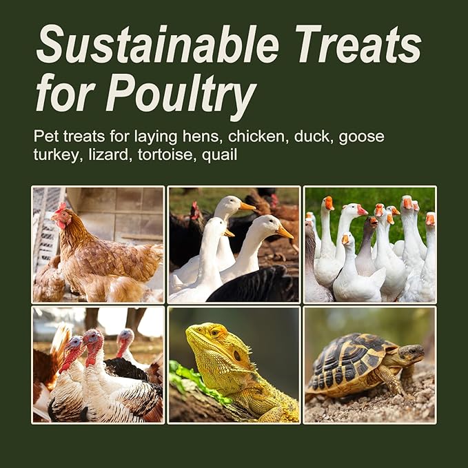 - PACKED FULL OF ENERGY: When you chickens eat the larva, they're getting the benefit of all that energy. Black Soldier Fly larvae make a great staple food or treat for chickens and many reptiles, like bearded dragons, leopard geckos, poison dart frogs, crested geckos, day geckos, and turtles etc.