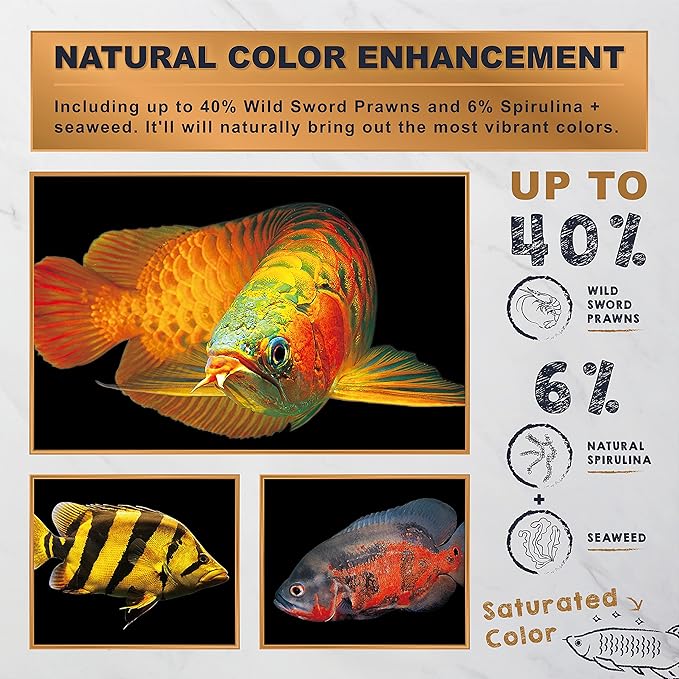 - Natural Coloration: The Ultra-enhanced formulation of natural seaweed, Australian spirulina, and premium fresh sword prawns enhances the natural coloration of your monster fish, presenting them in their most natural and vibrant colors