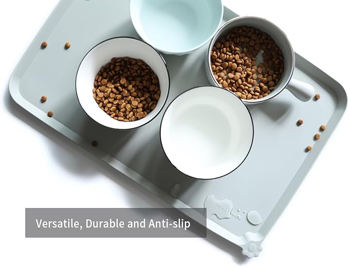 - Extra High raised outer lip prevents food, water and treats from spilling onto your clean floors! Please refer to measurements for size.No more messy spills on floor again.