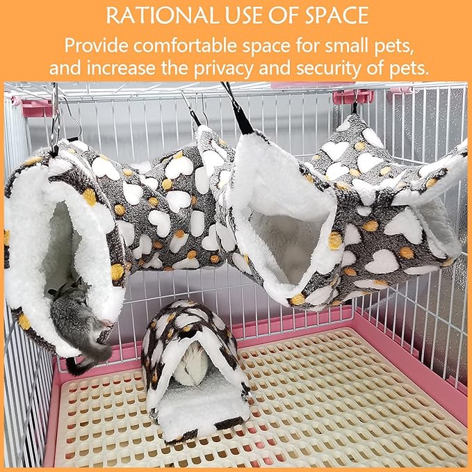 LEFTSTARER Cashmere Pet Bed Mat and Toy, Heart-Brown Ferret Guinea Pig Hammock Toy Small Animal Cage Accessories, 19.7x5.9in Hanging Tunnel & 13.39x13.39in Bunkbed Hammock