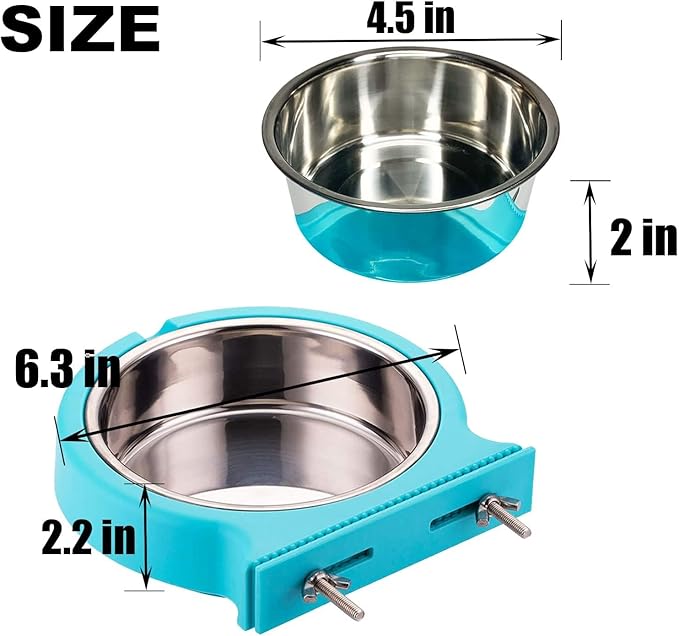 kathson 2 Pack Crate Dog Bowl Removable Stainless Steel Water Food Bowl Hanging Pet Cage Coop Cup for Rabbit Cat Puppy Bird Bunny Small Animals