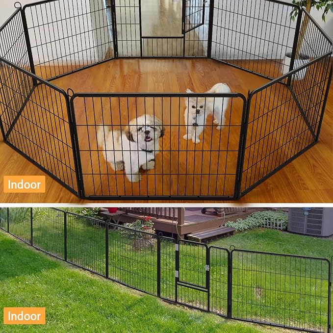 OFIKA Heavy Duty Metal Dog Playpen for Medium/Small Animals, 8 Panels 24âHeight x 27" Width, Dog Fence Exercise Pen with Doors, Pet Puppy Outdoor Playpen Pen for Outdoor, Indoor, RV, Camping, Yard