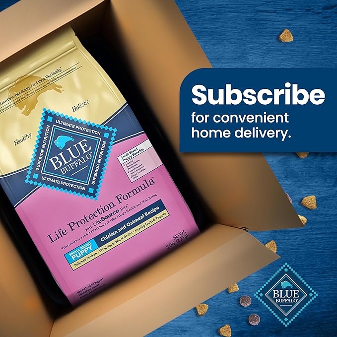 - Contains: One (1) 5-lb trial-size bag of BLUE Life Protection Formula Small Breed Dry Puppy Food, Chicken and Oatmeal Recipe