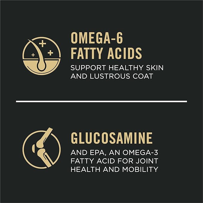 - Dog food with glucosamine and EPA, an Omega-3 fatty acid to promote joint health and mobility