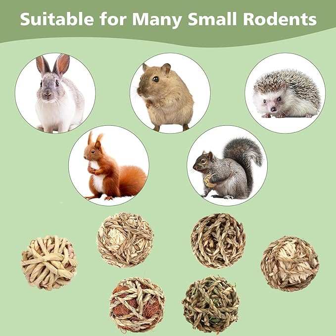 - These grass balls are ideal choices for rodents such as rabbits, chinchillas, hamsters, gerbils, and birds. They can throw the ball out for entertainment, conducive to the improvement of pet mood, chewing on natural grass balls also contributes to the physical health of small animals.