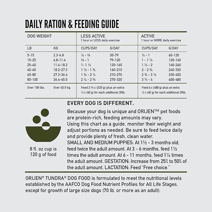 - One (1) 4.5 lb bag of ORIJEN TUNDRA Dry Dog Food