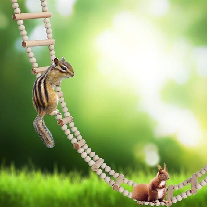 - 🦜【Easy to Install】: The total length of this ladder is about 45.3 inches, the total is about 0.45 pounds, and there are two metal buckles at both ends, which can be easily and safely installed anywhere. Our small animal bending bridge is not only suitable for all kinds of small animal cages but also suitable for hanging in the garden woods for birds, squirrels, and other small animals to play and stand.