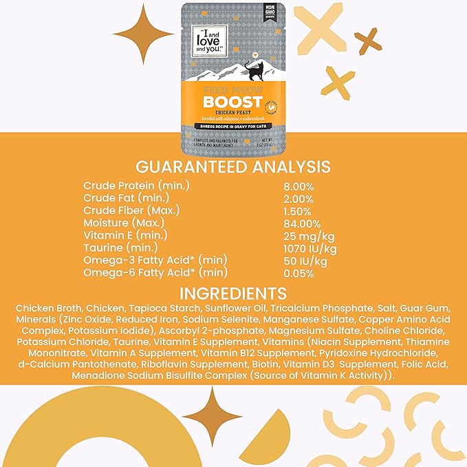 I and love and you Feed Meow Boost Wet Cat Food - Chicken - Antioxidants & Vitamins for Vitality, Grain Free, Shredded, 3oz Pack of 12