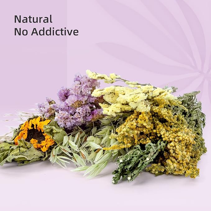 - What's you & your pet obtains? - Achieve to break the boredom, when you setup a nature theme cage by common paper bedding or aspen bedding, let's add some special flower or leaf elements, Wow, how artsy and thoughtful! How to make your hammy feel special, nothing better than getting air-dried natural bouquet like a gift, like a tasty treat is a favorite among most of small animals