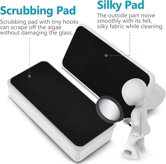 - -Simple and Durable : It’s made of waterproof plastic that protects the magnets from rusting. Because of how the fabric is attached, you don’t have to worry about it getting sand or substrate stuck in the fibers and scratching the glass while you clean. It’s also extremely durable, so it will last a long time.