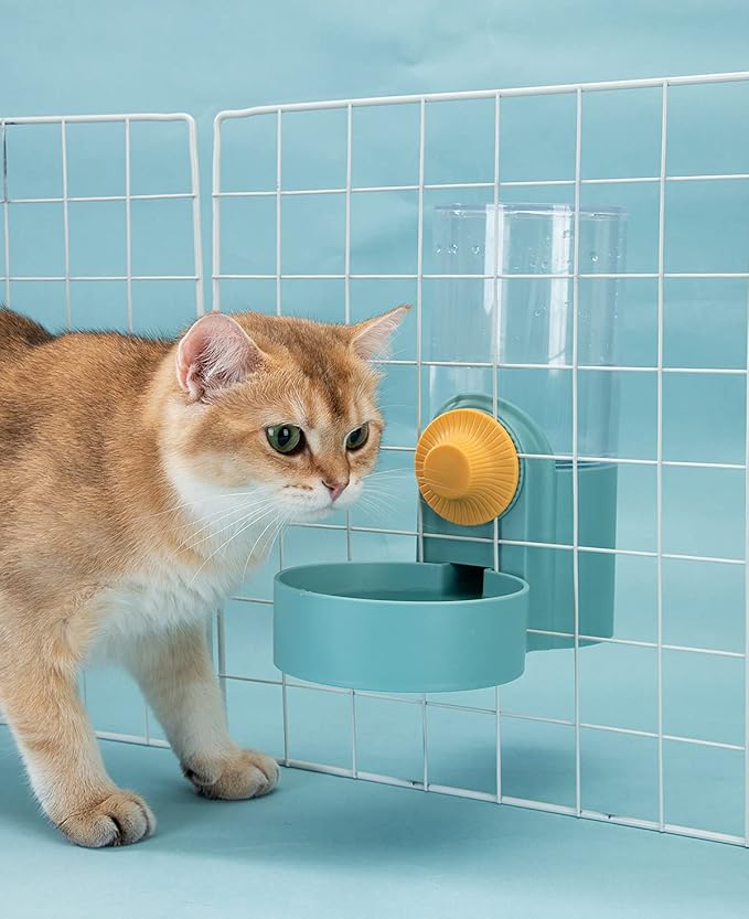 Kenond 40oz Hanging Automatic Rabbit Food and Water Dispenser, Dog Cage and Ferret Feeder, Gravity Cat Feeder Set, Cage Food Bowl for Bunny, Guinea Pig, Chinchilla (Green)