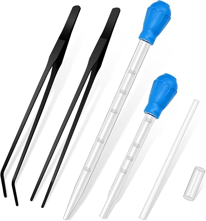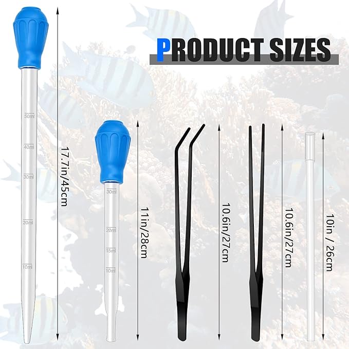 - 【Aquarium Feeding Set】Package includes 2 different sizes of coral feeder tubes (11.2"/28cm and 17.7"/45cm), with an extra extension tube, and 2pcs straight and curved long tweezers, perfect for feeding your little pet in the water.